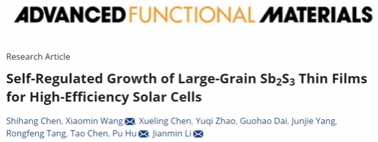 2022级研究生陈士航以第一作者身份在《Advanced Functional Materials》上发表题为“Self-Regulated Growth of Large-Grain Sb2S3 Thin Films for High-Efficiency Solar Cells”的研究论文。材料学院王小敏博士、胡朴教授为通讯作者。