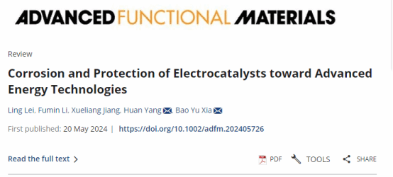 2022级研究生雷玲在杨欢副教授的指导下以第一作者身份在《Advanced Functional Materials》上发表题为“Corrosion and Protection of Electrocatalysts toward Advanced Energy Technologies”的研究论文。