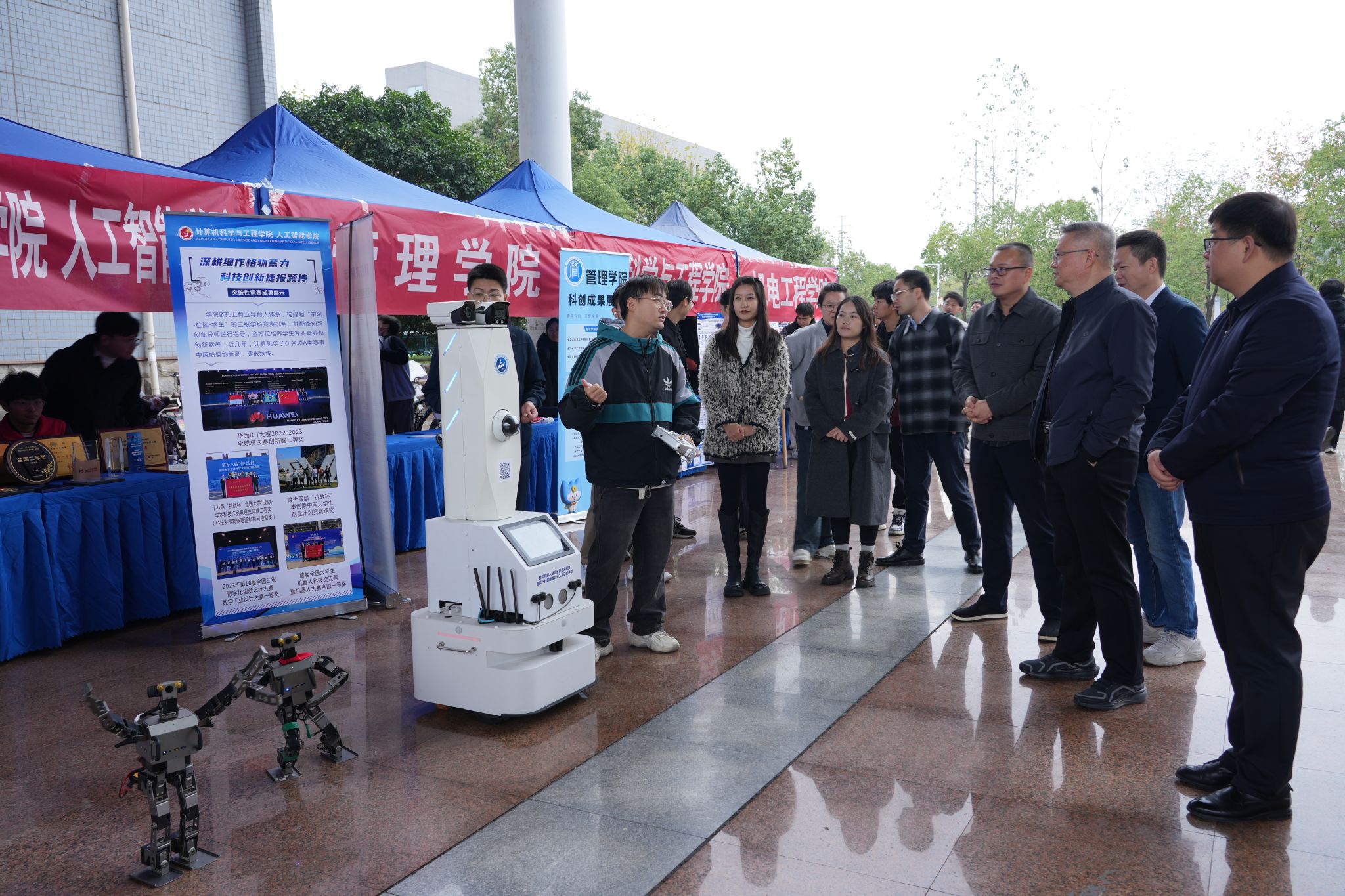 场内气氛热烈,场外精彩纷呈。会场外,大学生科创成果展在知博广场精彩上演,各学院、学生社团纷纷亮出“看家本领”,集中展示近年来大学生科技创新成果。校党委副书记李志旭及嘉宾前往现场观看展出,体验学生科创成果,并与同学们交流互动。
