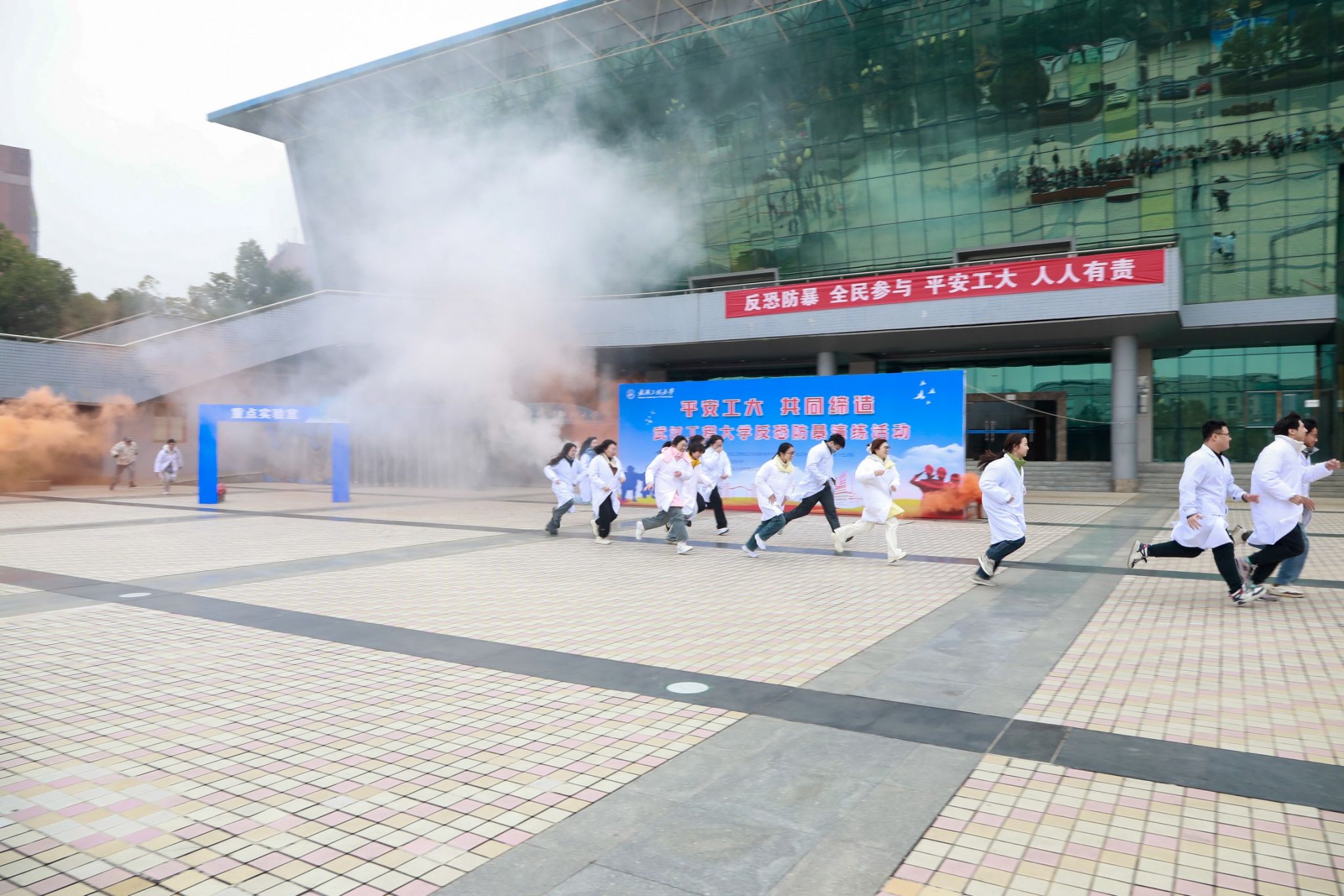 本次演练以模拟恐怖暴力分子强行闯入学校重点实验室盗窃核心数据、破坏科研仪器为场景展开。伴随着滚滚浓烟,演练正式开始。