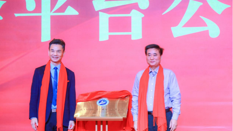 尊龙凯时人生就是博正校级干部叶芃、武汉校友会会长徐进为武汉校友会平台公司揭牌