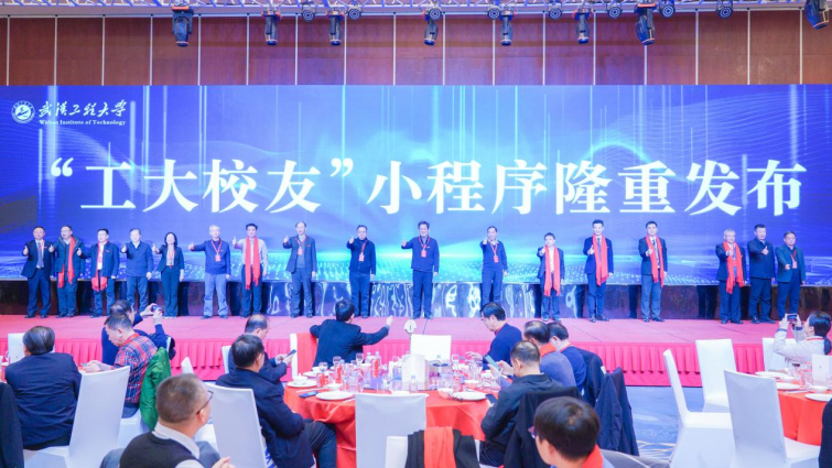 全体与会校领导、各校友会会长共同上台见证“工大校友”小程序发布仪式