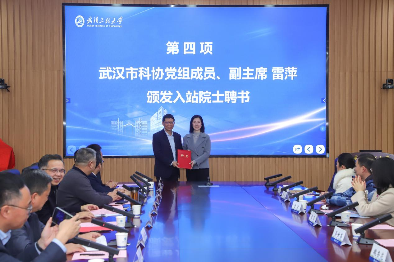 揭牌仪式现场,武汉市科学技术协会党组成员、副主席雷萍为涂善东院士颁发聘书。