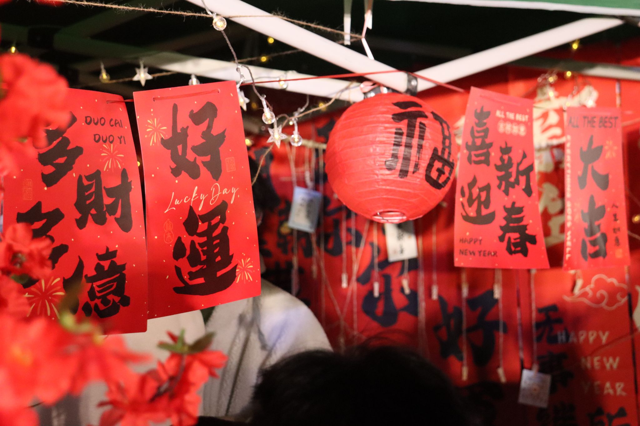 元旦游园系列活动现场,大家结合喜迎元旦、活力校园、专业特色等不同元素,设计了喜庆的新年装饰,搭配猜灯谜、写春联、小剧场演出等多种形式的沉浸式互动体验,师生一同体味年俗文化,让过节的仪式感拉满。武昌校区体育场人声鼎沸,四学院联合庆元旦。国际学院留学生同学早已融入节日氛围中,在现场忙着写春联、剪窗花,来自摩洛哥的留学生El Maaloumy Fatima拿着刚刚亲手写的福字,她说:“老师告诉我福字是迎春纳福的意思,我会把它贴在宿舍门口,迎接新的一年。”
