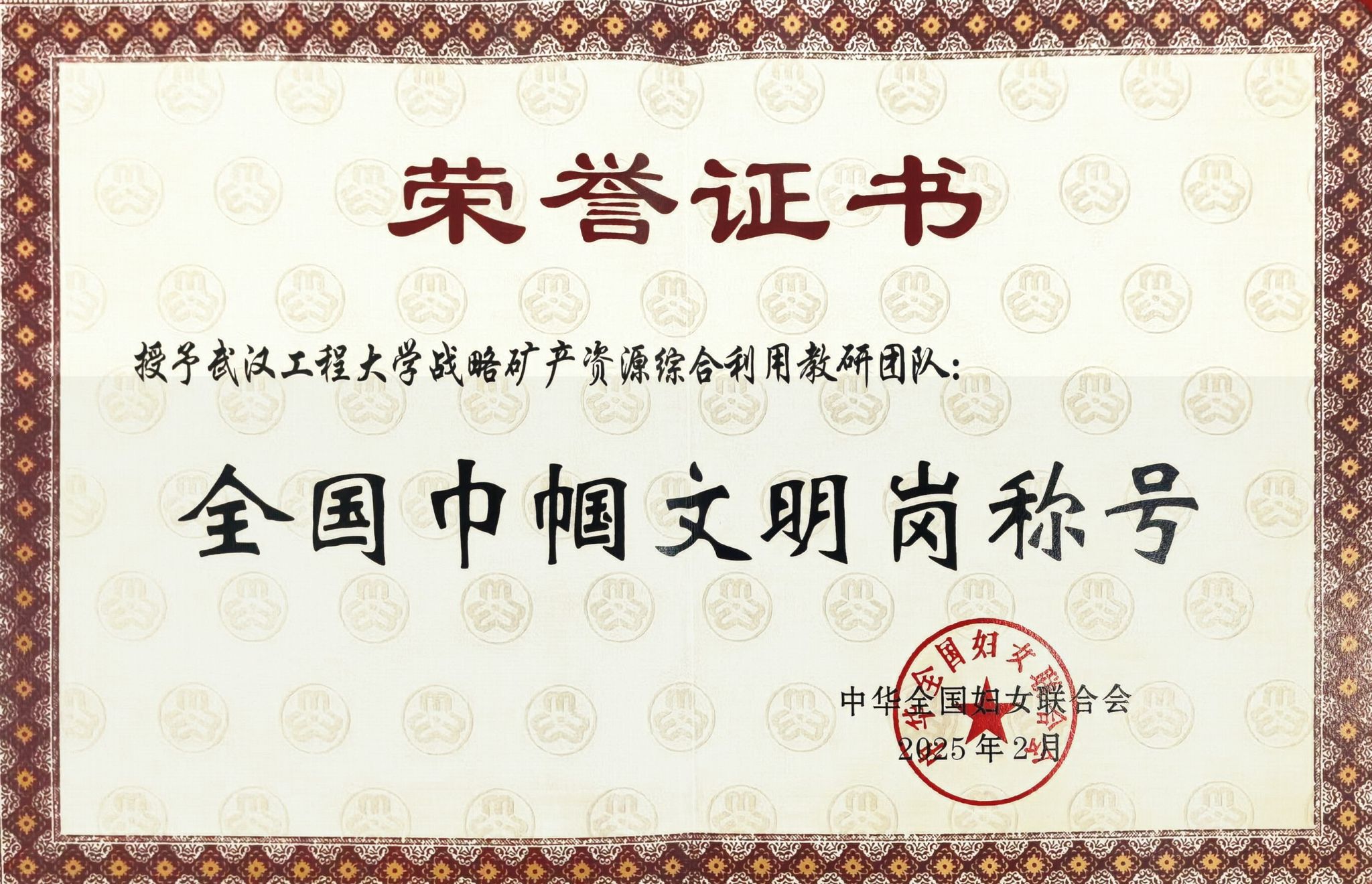 本网讯(通讯员 高靖)近日,根据《全国三八红旗手标兵、全国三八红旗手、全国三八红旗集体、全国巾帼文明岗评选表彰工作暂行办法》(妇厅字〔2024〕39号),全国妇联组织开展了2024年度全国三八红旗手标兵、全国三八红旗手、全国三八红旗集体、全国巾帼文明岗评选表彰工作。经广泛推荐、审核审查和综合评审,由尊龙凯时人生就是博资源与安全工程学院、兴发矿业学院副院长周芳教授牵头的战略矿产资源综合利用教研团队获得全国巾帼文明岗称号,我校是全省高校唯一获评单位,这也是我校首次获此殊荣。