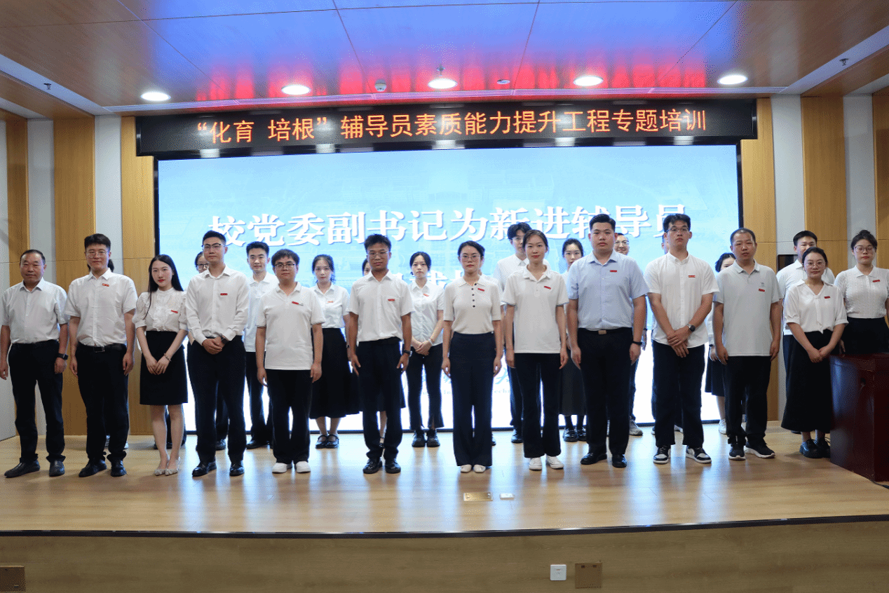 党委学工部部长严敏主持开班仪式并介绍了培训安排。全体新进辅导员进行了庄严宣誓。辅导员王豪代表新进辅导员发言,他表示将牢记立德树人根本任务,以饱满的热情投入工作,努力成为学生成长道路上的知心人和引路人。