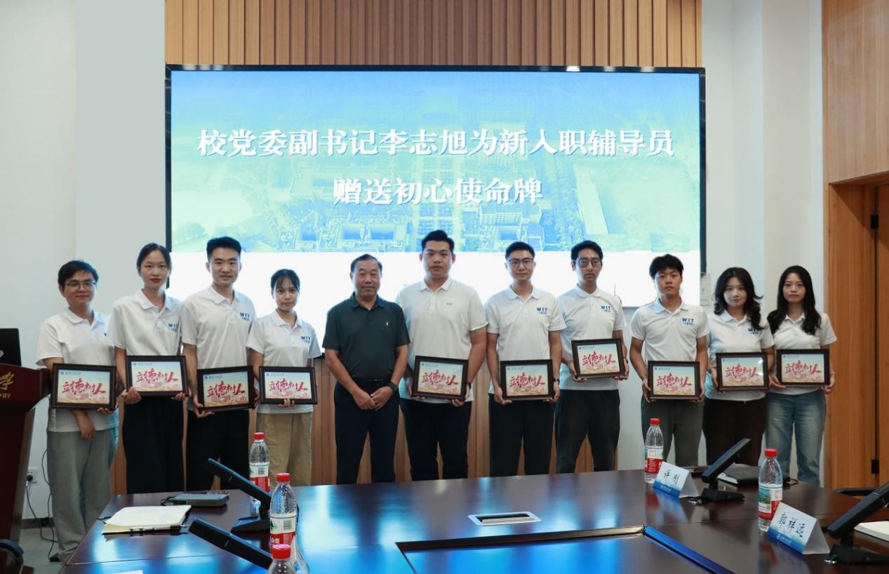 校党委副书记李志旭首先代表学校对新入职辅导员的到来表示热烈欢迎,并向他们逐一颁授了“立德树人”使命牌。同时,他就做好辅导员工作提出了四点希望与要求:一是要把握好职责定位,不断提升辅导员的职业认同感、荣誉感和责任感;二是要切实增强“脚力、眼力、脑力、笔力”,着力提升政治素养、知识素养、职业素养和能力素养,打造一支政治过硬、能力过硬的专业化职业化的高素质辅导员队伍;三是要始终坚持“围绕学生、关照学生、服务学生”,把以生为本的理念贯穿到立德树人的方方面面;四是要持续加强对辅导员的教育和培养,不断促进辅导员队伍健康茁壮成长。
