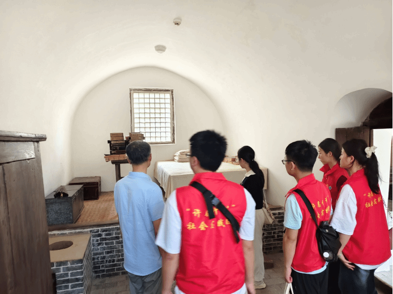 触摸着斑驳木门上的层层沟壑,实践团成员仿佛透过历史的长河,触碰到那段峥嵘的革命岁月。实践团成员姜语柔感悟到:”泛黄的窗纸、生锈的铁锁和坚固的防空洞,无不在诉说着那个时代的风云变幻,无不映衬着革命先辈们斗争环境的艰苦,无不验证着中国革命的辉煌伟大”。