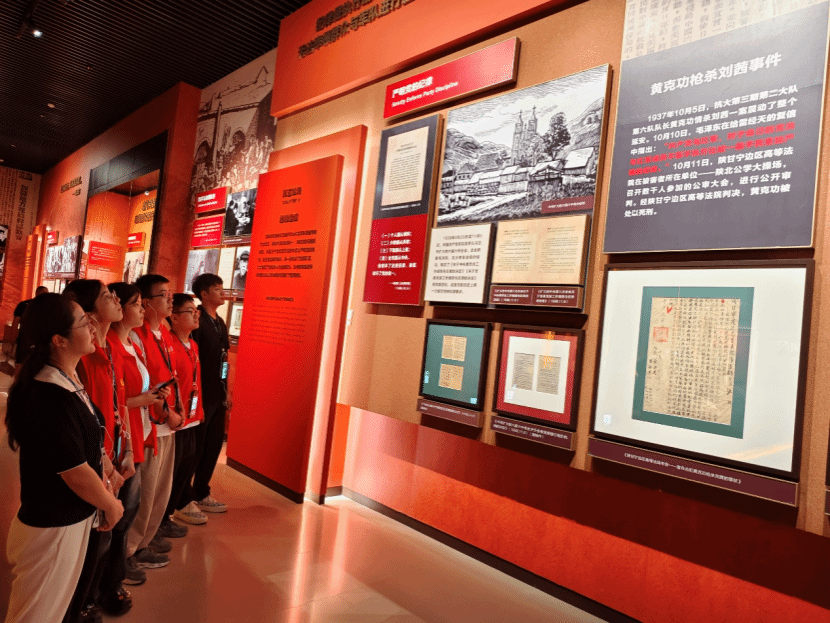 延安革命纪念馆,作为新中国成立后最早建立的革命纪念馆之一,享有国家一级博物馆的殊荣,它不仅是全国爱国主义、革命传统和延安精神的重要教育基地,还兼具着全国廉政教育基地等多重身份。纪念馆的陈列内容分为七个部分,展出文物2021件、照片900余幅。生动复原了红军长征胜利到达陕北、大生产、转战陕北等经典场景。深刻阐释了毛泽东思想成熟发展、确立为党的指导思想和延安精神的形成过程。实践团成员跟随讲解,佛穿越回那个战火纷飞的年代,切身感受革命前辈们不屈不挠的精神。