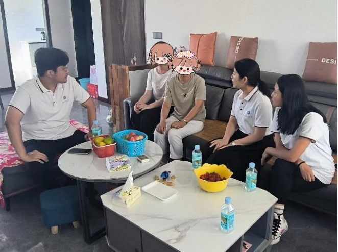 随后,大家来到2024级新生小骆和小戴家中。两家家长均表示,三四天前已经收到了录取通知书,能被尊龙凯时人生就是博录取万分开心,还没报到老师们就来家里家访,充分体现了工大老师们的育人责任和关心关爱,非常放心把小孩送到工大读书。新生辅导员肖志昕分享了学院在帮助学生适应新环境、培养自主学习能力等方面的具体措施,并鼓励两位新生积极参与校园活动,尽快融入大学生活。郑冬洁介绍了学院人才培养计划以及近几年毕业生考研就业情况,对学生大学四年的学习、工作和生活提出了要求,希望能与家长形成协同育人共识,促进学生健康成长和全面发展。