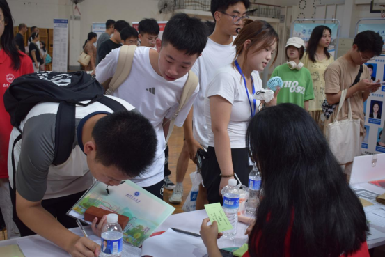 新生进校当天,迎新工作有条不紊地进行着,新生刚抵达校门,便被自己的专属志愿者一一认领,享受“拎包入住”一站式入学报到服务,他们热情细心地引导新生报到,为新生介绍校园环境、讲解水电卡办理流程等。