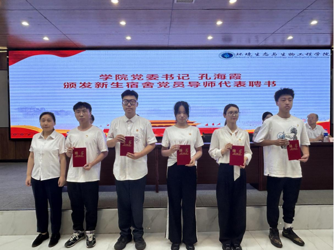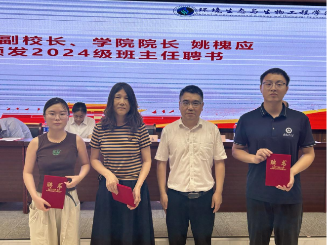 本网讯(通讯员 肖志昕)9月10日下午,环境生态与生物工程学院在图灵报告厅隆重举行2024级新生开学典礼。学校副校长、学院院长姚槐应讲话并为新生班主任颁发聘书。学院党委书记孔海霞为新生宿舍党员导师颁发聘书,学院领导班子、2024级新生班主任及全体辅导员参加本次开学典礼。