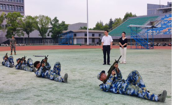 慰问团被同学们整齐划一的队列、铿锵有力的口号声所吸引,沿着训练场逐一观看了分列式、战术演练等多个训练科目。艺术设计学院党委副书记王超对同学们的出色表现给予了高度评价,鼓励大家继续发扬不怕苦、不怕累的精神,将军训中学到的纪律性、团结协作精神带到日常学习和生活中,成为全面发展的优秀青年。