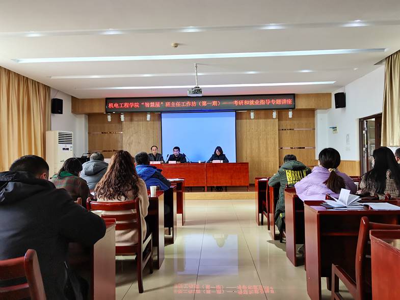 本网讯(通讯员 李俊)为提高班主任的班级管理能力和工作艺术,3月11日下午,机电工程学院“智慧屋”班主任工作坊成立,并成功举办了第一期考研和就业指导专题培训活动。学工部副部长徐迪迪、招生与就业工作处副处长田勇出席了启动仪式,学院全体辅导员、班主任参加了培训研讨活动。活动由学院党委副书记李俊主持。