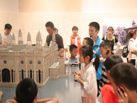 馆里展现的模型在灯光的映照下是鲜活的、是充满视觉冲击的、是与课本里示例的图片截然不同的。这份新鲜与震撼深深触动着社区里每位小朋友的内心,当耳麦里听到老师的提问,每个小朋友都会高举着手,争先抢后地回答。建筑构造的细节精妙和背后尘封已久的历史文化在老师条理清晰的讲解下缓缓向大家铺开,知识收获的满足与全新的听讲体验让每个小朋友、家长以及志愿者都沉浸其中。