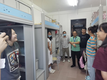 交流会结束后,学院党委书记夏志敏、党委副书记王超、2021级新生班主任及全体辅导员前往新生宿舍,走访慰问新生整体生活情况。