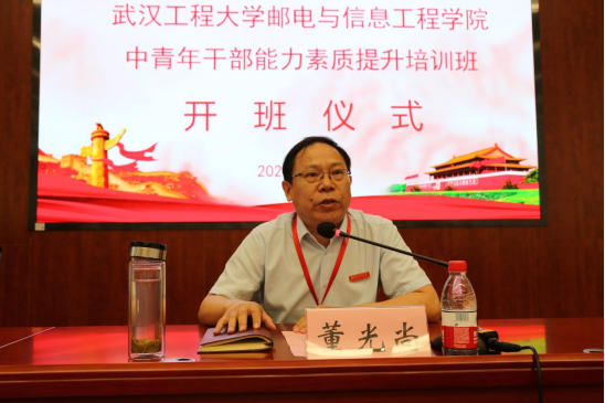 学院党委书记董光尚作动员讲话。他指出,近年来,学院高度重视干部培养选拔,积极为广大青年干部的成长进步搭建平台。加强干部队伍的学习培训,既是学院发展形势所迫,也是学院干部队伍建设的需要。他对全体参训学员提出三点要求和希望:一是把稳思想之舵,加强政治生活淬炼。结合党史学习教育,不断增强“四个意识”、坚定“四个自信”、自觉做到“两个维护”,让个人的政治判断力、政治领悟力、政治执行力同自己所履行的岗位职责匹配,自觉做到在思想上、政治上、行动上同以习近平同志为核心的党中央保持高度一致;二是坚持学思践悟,夯实理论学习之基。始终保持“空杯心态”,坚持终身学习,学习与自己工作领域相关的知识,打牢理论功底,增加知识储备,以勤学获真知、以深思达至信、以真用促笃行,不断提升理论修养和丰富知识体系,始终坚定理想信念、砥砺初心使命,做一名不负重托的行动者;三是增强责任意识,主动担当作为。要心里始终装着师生,把师生放在心中最高位置,立足本职岗位,尽职尽责、尽心尽力,做到困难面前不推诿,全力以赴,为师生、为学院事业发展主动担当作为,干出一番事业。