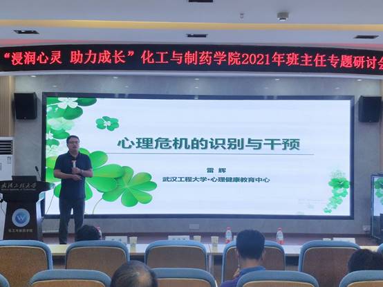 本网讯(通讯员 汤曦)7月6日下午,化工与制药学院在大化工楼610报告厅举办“浸润心灵、助力成长”班主任专题研讨会,校党委学工部副部长徐迪迪、国际学院副院长余响林、心理健康教育中心常务副主任雷辉,学院中心(系)主任以及全体班主任、辅导员参加会议,会议由院党委副书记周丹主持。