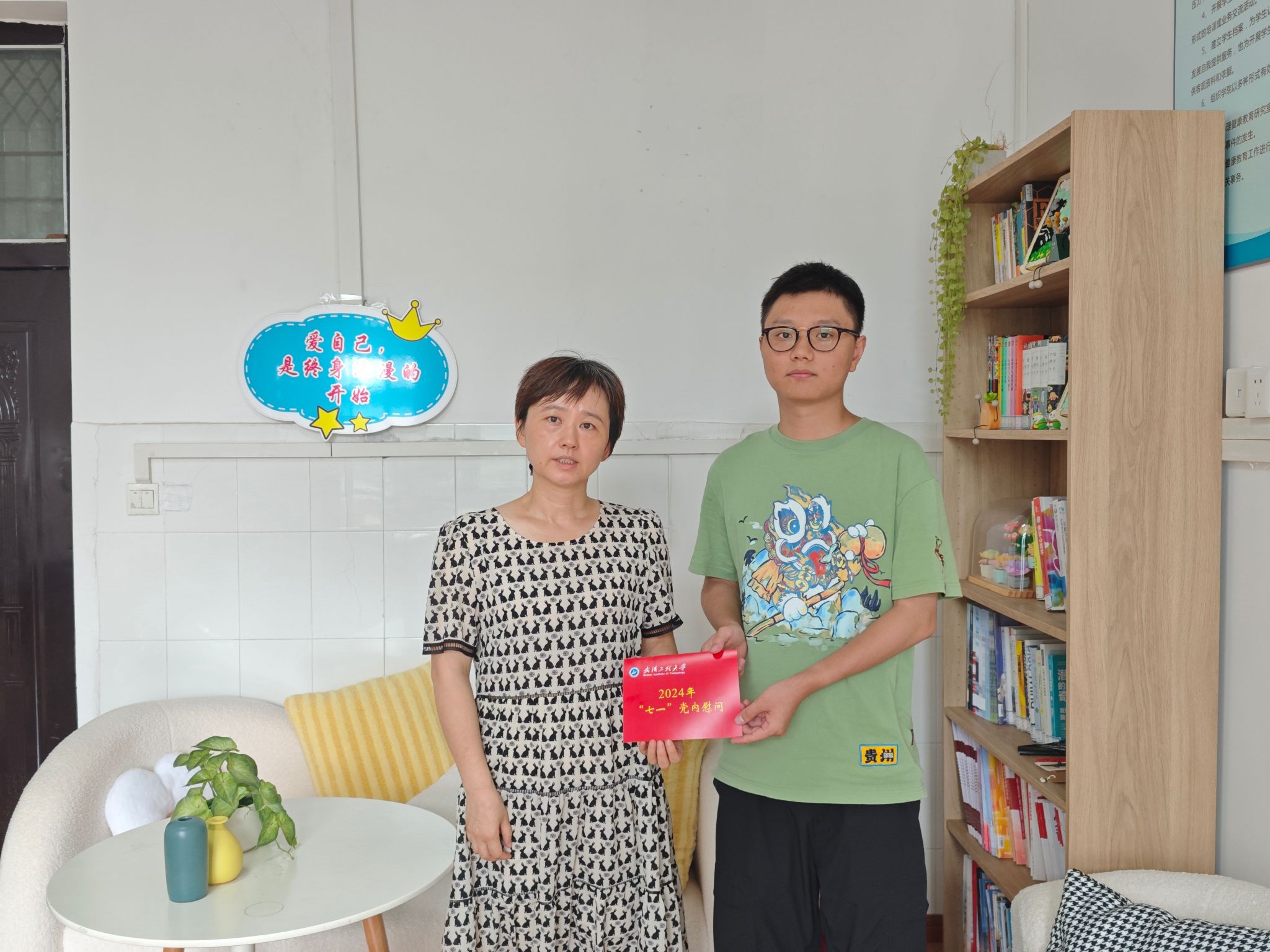 学院党委副书记李佳代表院党委给学院困难党员送上慰问信,带去了党组织的关怀和节日的问候,并深入了解了困难党员的学习生活情况、身体状况、家庭情况以及目前遇到的实际困难,勉励他要不忘初心、牢记使命。
