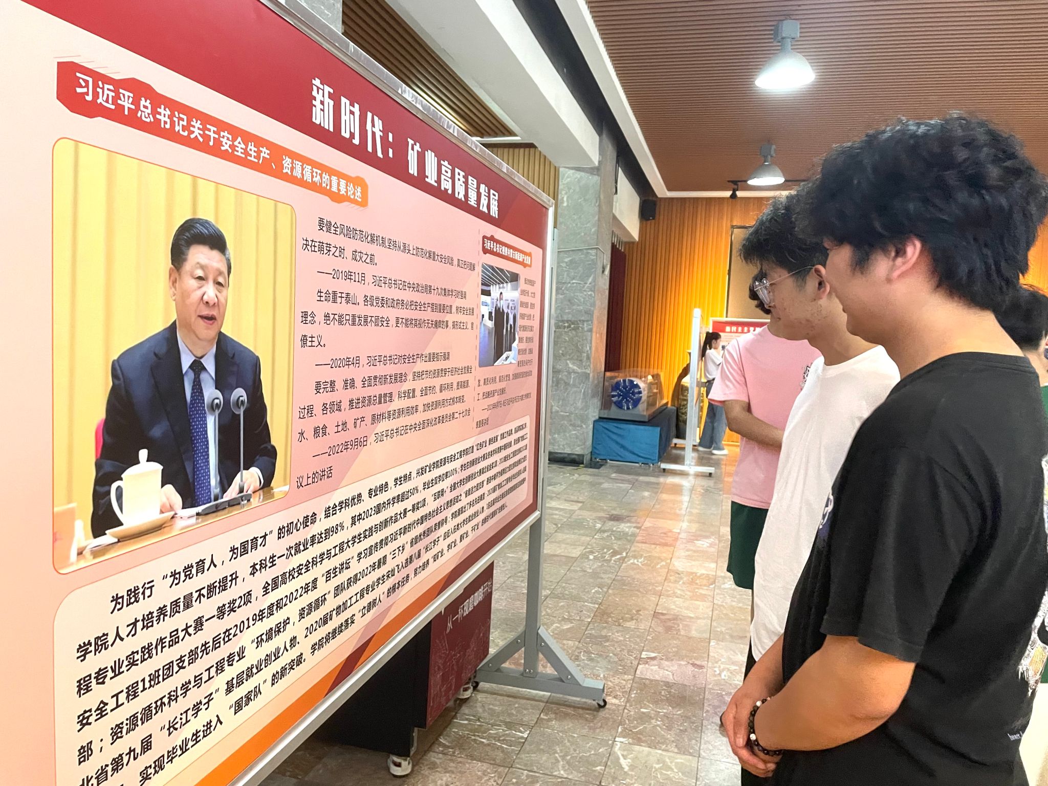学院组织筹划了《党与中国矿业发展》主题图片展活动,展览以矿业在中国共产党领导的革命、建设和改革中发挥的重要作用为主线,集中展现了矿业发展的艰辛历程和矿业人为了党和国家的发展前仆后继、无私奉献、守正创新、勇毅攀登的奋斗精神。