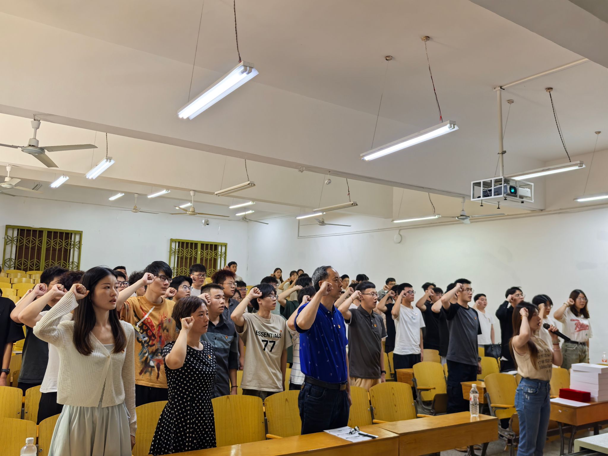 学院组织全体党员重温入党誓词,勉励党员同志提高党性修养,不忘初心,进一步坚定理想信念,牢记誓词,恪守誓言,做合格的共产党员。