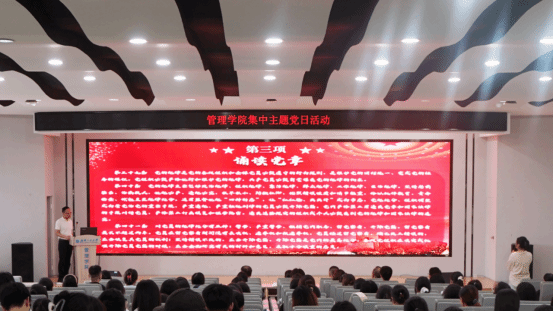 本网讯(通讯员 李梓煜)6月20日下午,管理学院在文科楼413报告厅举行集中主题党日活动。学院领导班子成员、党支部书记、全体教职工党员及学生党员代表参加活动,活动由学院党委副书记李义伟主持。