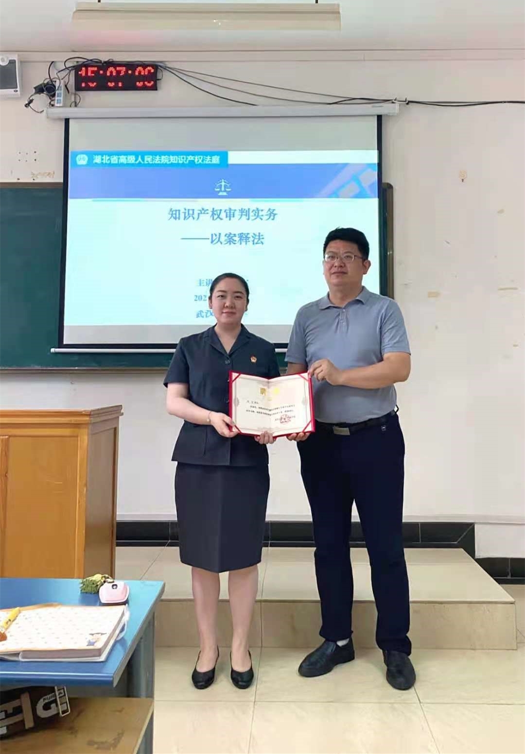 本网讯(通讯员 王晓泽 马秋芬)6月23日下午,湖北省高院民三庭三级法官叶宇应邀莅临我校,在我校流芳校区1209教室举行“知识产权审判实务之以案释法”主题讲座。