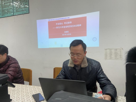 副院长刘章军在道路桥梁与渡河工程系教工党支部宣讲十九届六中全会精神,他结合了学院教学、科研实际,希望大家坚持以习近平新时代中国特色社会主义思想为指导,牢牢把握主题教育的根本任务和总要求,教师党员要坚持教书育人的初心,担负为国育才的使命,要为学院建设一流专业做出应有的贡献。(审稿 陆新)