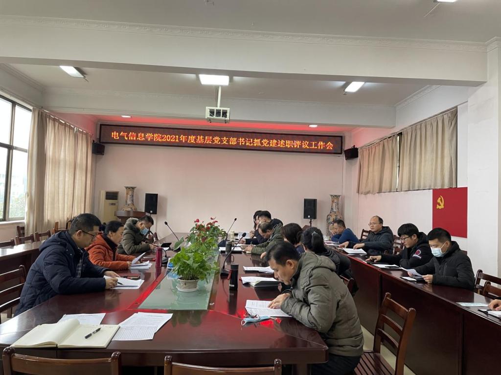 本网讯(通讯员 周雯琪)1月5日下午,电气信息学院在4B319会议室召开2021年度基层党支部书记抓党建述职评议会。学院党委委员、全体党支部书记、民主党派教师代表参加此次评议会,会议由学院党委书记谢春晖主持。