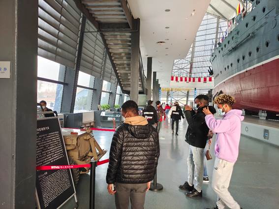 行程的最后一站——中山舰博物馆,讲解员带领留学生参观了博物馆的舰体陈列厅、历史遗迹陈列厅和出水文物精品陈列厅,讲述了中山舰的发展历史。从中山舰上打捞出来的文物展品中依然可让大家感受到当年战争的残酷,令学生都感叹不已,纷纷表示当今的和平来之不易。