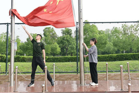 七时整,升旗仪式准时开始,旗手伴随着雄壮的国歌声缓缓将五星红旗升起。全体师生肃立,面向国旗行注目礼,以此表达对祖国的无限热爱和崇高敬意。