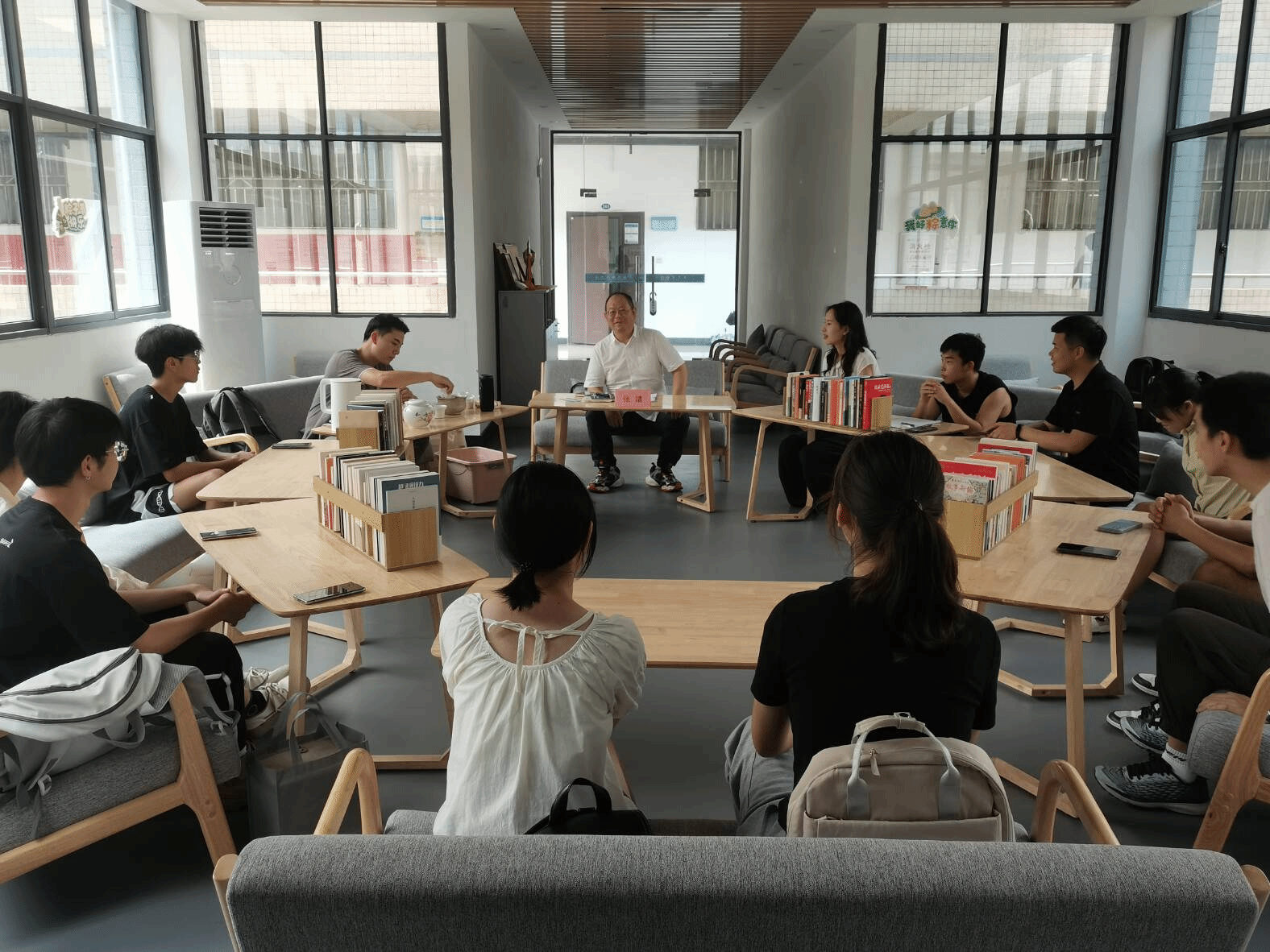 接着,茶艺师现场为大家展示了泡茶的技巧和步骤。从选茶、泡茶、倒茶到品茶,每一个细节都体现了茶艺的精湛与优雅。品茶环节开始后,师生们围坐在一起,细细品味着茶香,依次分享着自己对“茶”的了解,以及对于自我关照这一话题的想法和感悟,即使同学们来自不同的家乡,但是都缘于对茶的兴趣,畅所欲言,分享个人见闻。张老师一一解答大家对于茶的一些好奇,并给予大家品茶种类的建议,大家纷纷表示,品茶让他们感受到了前所未有的放松与愉悦。在茶香中,他们仿佛找到了一个可以倾诉心声、分享喜悦的港湾。