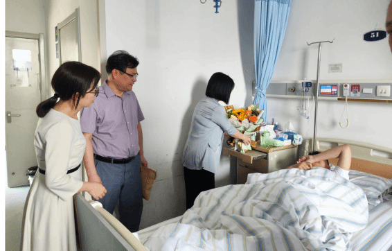 本网讯(通讯员 李昊昱)5月15日下午,学校党委研工部副部长陈朝娟、材料科学与工程学院院长江学良等一行四人赴武汉大学人民医院东院,看望慰问材料科学与工程学院2022级患肾衰竭的研究生张政澳及其家人。