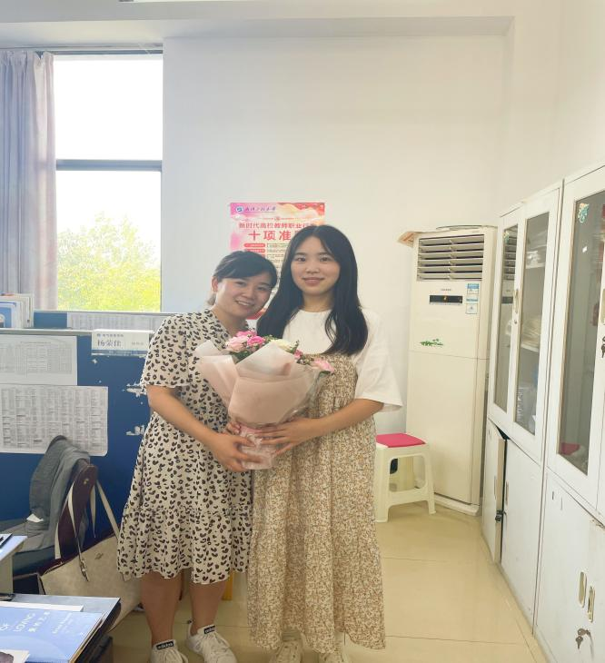 “老师您好,送您一束花,祝您节日快乐”,2019级信息工程孙丹同学献上自己对老师的祝福。作为一名学生,她觉得在教师节这天向老师们的辛劳付出表示感谢是应该的,也很荣幸能够给老师们送花。