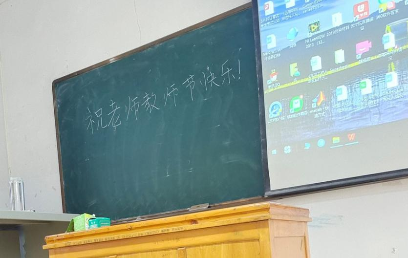 课前,同学们早早来到了教室,主动在黑板上写上“祝老师教师节快乐”。