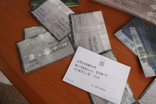 三行情书是作者以简练的语言,通过书写三句文字来表达情感的一种诗歌体裁。此次活动采取“线上+线下”的方式举行,参与者可围绕深情回顾党的奋斗历史、热情讴歌党的光辉业绩、描绘祖国的大好河山、歌唱祖国的繁荣昌盛等内容进行书写创作。图书馆通过建立线上活动群、微信公众号互动等方式进行线上征稿。与此同时,线下活动也在图书馆门前广场上火热开展,红色活动展板上贴的一封封情书吸引了大量师生驻足观看,大家在活动现场工作人员的引导下有序领取明信片,写下想对党诉说的“情话”。