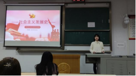 2018级环境科学专业罗思晗同学分享了学习社会主义发展史的收获,从历史的角度为同学们详细阐述了自己对社会主义发展史各阶段的理解。