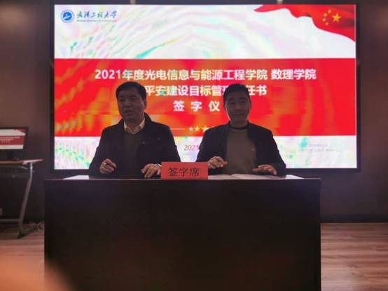 会上,学院党委书记陈君、院长熊伦与各党支部书记、教研室主任一一签订平安建设目标管理责任书。院长熊伦指出,一是要明确签订平安建设目标管理责任书的目的与意义,层层传导压力、人人肩负责任,确保学院、校园安全稳定;二是学院班子成员要敢于担当,党政同责、一岗双责、齐抓共管,切实扛起主体责任。