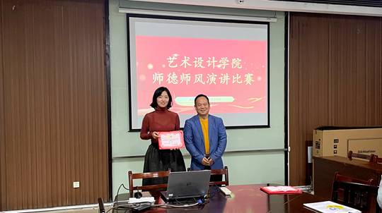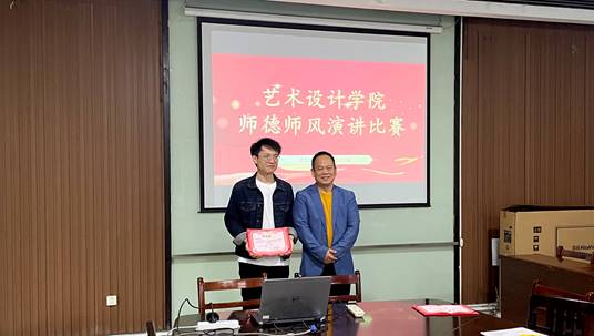本网讯(通讯员 高靖)为进一步加强艺术设计学院师德师风建设,推进落实学校师德专题教育和2021年度师德师风宣传教育月活动部署,引导广大教师以德立身、以德立学、以德施教、以德育德,我院于10月14日在学院会议室开展了师德师风演讲比赛。