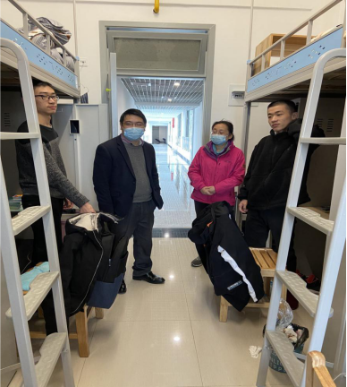 教学检查结束后,学院班子还深入到学生宿舍,详细地了解当前学生返校情况,并看望了返校学生们。院长姚槐应代表学院欢迎同学们顺利返校,并鼓励同学们在新学期、新阶段再接再励,以只争朝夕的昂扬斗志投入到学习当中,不负韶华、再创佳绩。(审稿 孔海霞)