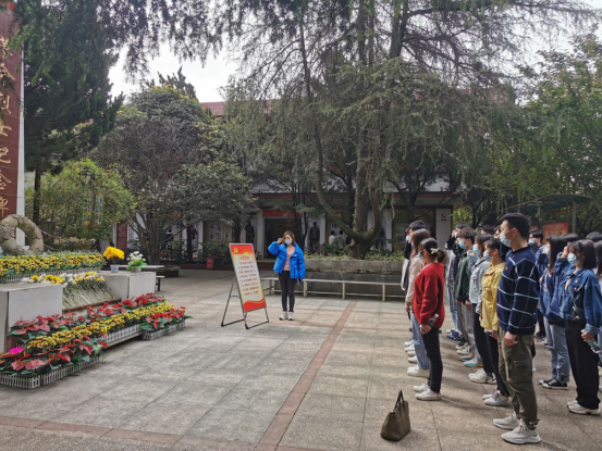 在革命烈士纪念碑前,学生们手持鲜花依次向烈士敬献。学院党委副书记向翼凌老师发言,倡导广大同学缅怀英烈,铭记历史,时刻牢记党员身份,从自身做起,奋发图强,为祖国建设添砖加瓦。