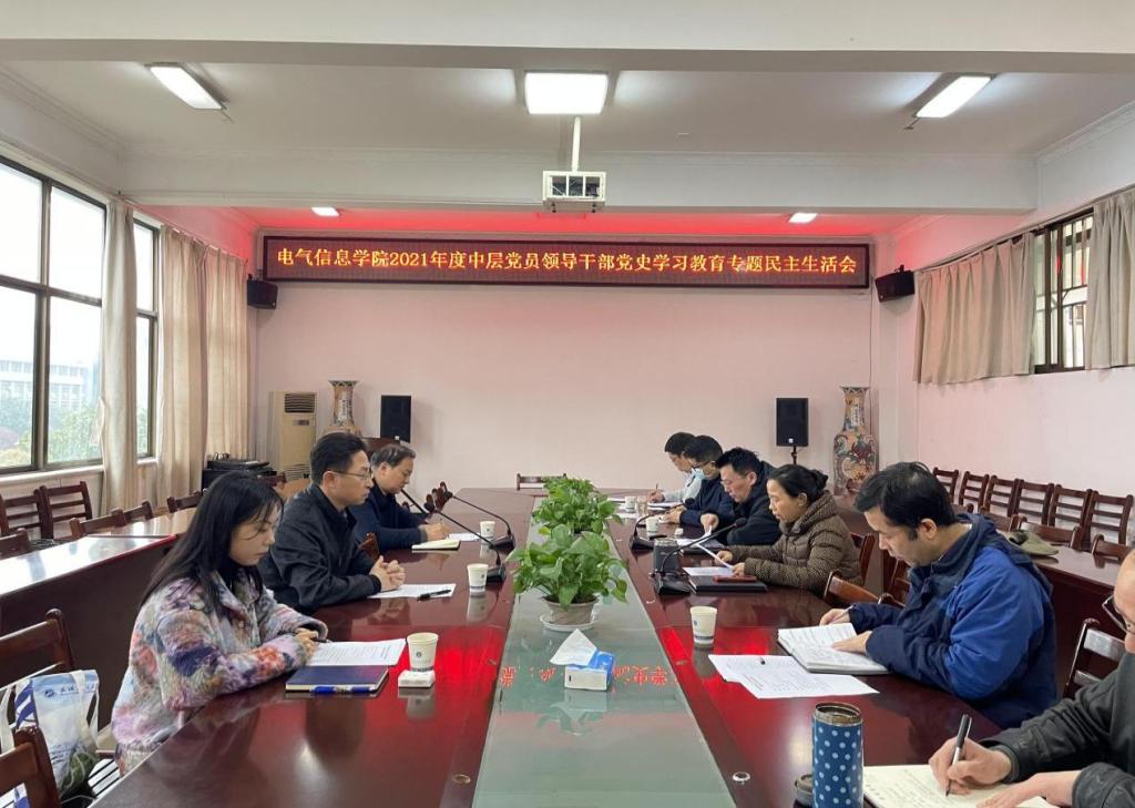本网讯(通讯员 周雯琪)3月25日上午,电气信息学院在流芳校区4B 319会议室召开2021年度中层党员领导干部党史学习教育专题民主生活会。学校党史学习教育第六指导督查组组长、校党委常委、副校长张彦铎出席会议并讲话,指导督查组副组长、党委研工部副部长陈俊、党委宣传部主任科员王媛到会指导。会议由学院党委书记谢春晖主持,领导班子全体成员参加会议。
