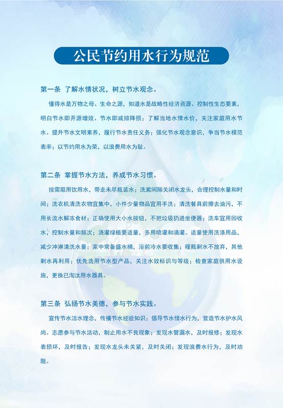 节水减排,从你我做起,从现在做起,从身边的点点滴滴做起,让我们一起把每一天都过成“世界水日”,每一周都当作“中国水周”!大家一起共同行动起来为建设文明、美丽、绿色校园作出应有的贡献。(审稿 傅凯)