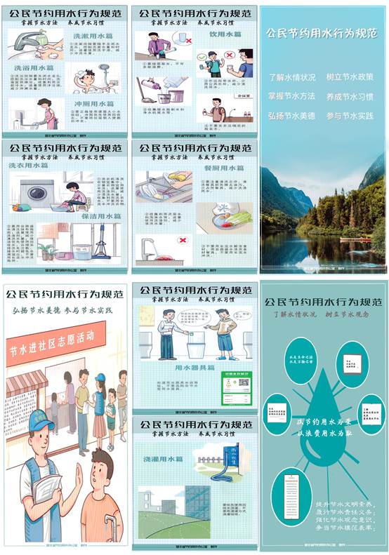 节水宣传活动主要在主干道上 “悬挂横幅”、活动场地上摆放节水主题展墙和展板以及发放《全民节约用水行为规范》的宣传册等活动形式来开展。