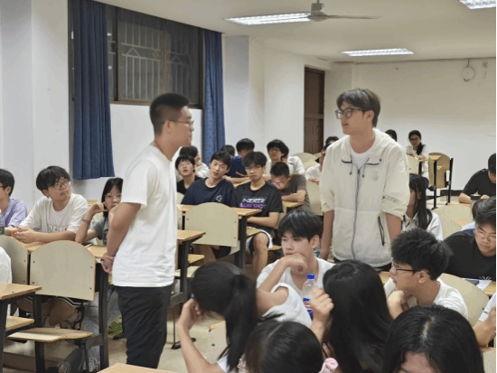 经验分享结束后,同学们积极提问,现场氛围热烈,面对“如何平衡竞赛与日常学习”“大一快结束了参加竞赛是否有些晚”“如何带动队友的主观能动性”等问题,段懿桐和康淏森都耐心地答疑解惑,帮助同学们扫除盲区、增强信心。