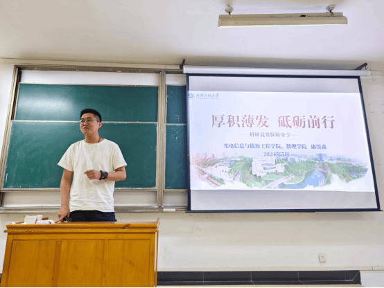 本网讯(通讯员 陈正超)5月26日晚,光电信息与能源工程学院、数理学院科创竞赛经验分享会在流芳校区成功举办。本次经验分享会邀请到学院2024届优秀毕业生段懿桐和康淏森担任分享人,分享其丰富的科创竞赛经验。学院辅导员陈正超及200余名学生参加了本次活动。