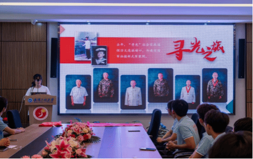 出征仪式在庄严的国歌声中拉开序幕。同学们观看2023年暑期“三下乡”社会实践活动纪录片,“寻光”实践团代表葛昕羽以“态度”、“意义”、“记录”三个词向大家分享如何做好团队管理、报告撰写、总结宣传等实践经验,她用饱满的热情回顾了“三下乡”社会实践经历,分享了收获和成长,展示了团队的青春风采与青春力量。