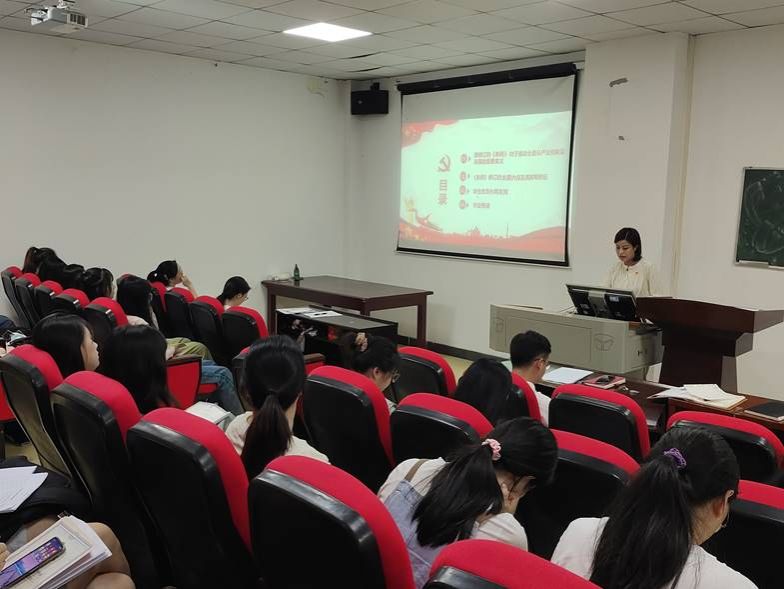 大会第三项,学院党委副书记徐思思讲授党纪学习教育专题党课。徐书记带领毕业生党员同志们深入学习并解读了新修订的《中国共产党纪律处分条例》,围绕“新修订的《条例》对于推动全面从严治党纵深发展的重要意义”、“《条例》修订的主要内容及其鲜明特征”、“学生党员在党纪学习教育中的作用发挥”三个方面展开了细致的讲解。同时寄语全体毕业生党员:一是要准确把握时代大势,做心怀家国的“明白人”;二是要准确把握前进航向,做脚踏实地的“实干家”;三是要准确把握职责使命,做理想坚定的“奋斗者”。