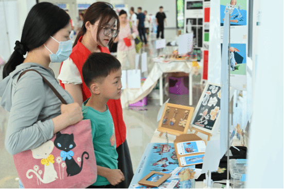 参观校史馆时,小朋友们被一幅幅历史照片和一件件珍贵文物深深吸引,他们好奇地提问,认真地聆听,对大学的历史和文化底蕴有了初步的了解。在艺术学院研究生毕设展区,他们惊叹于学长学姐们的创新设计和科研成果,激发了对科学探索的兴趣并不禁赞叹:“哥哥姐姐们做的好漂亮!我也要好好学习,未来做超级超级好看的机器人!”这份纯真的赞叹,是对未来无限可能的向往。随后,孩子们漫步在校园中,他们惊叹于大学的美丽风光,一位小女孩拉着妈妈的手,兴奋地说:“哇,原来大学的校园这么大,这么漂亮,我好喜欢这里,长大了我也要考到这么美丽的校园里读书。”这是他们对未来的憧憬,是对知识殿堂的向往。校园里宽敞的操场、静谧的图书馆、绿树成荫的小道,每一处都让他们流连忘返。