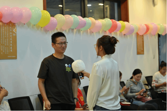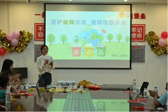 参观学习结束后,大家一同走进材料学院,孩子们不仅收到了志愿者精心准备的零食和AD钙奶,还被气球装饰的温馨氛围所吸引,快乐地与哥哥姐姐们玩耍,缓解疲劳的身心,脸上洋溢着纯真的笑容。主持人彭馨博用生动有趣的语言把所有人带进垃圾分类的世界,使得枯燥的知识变得鲜活起来,使大家听得津津有味。随着讲解的深入,家长和孩子们开始积极举手参与互动答题环节,领取自己喜欢的礼物。